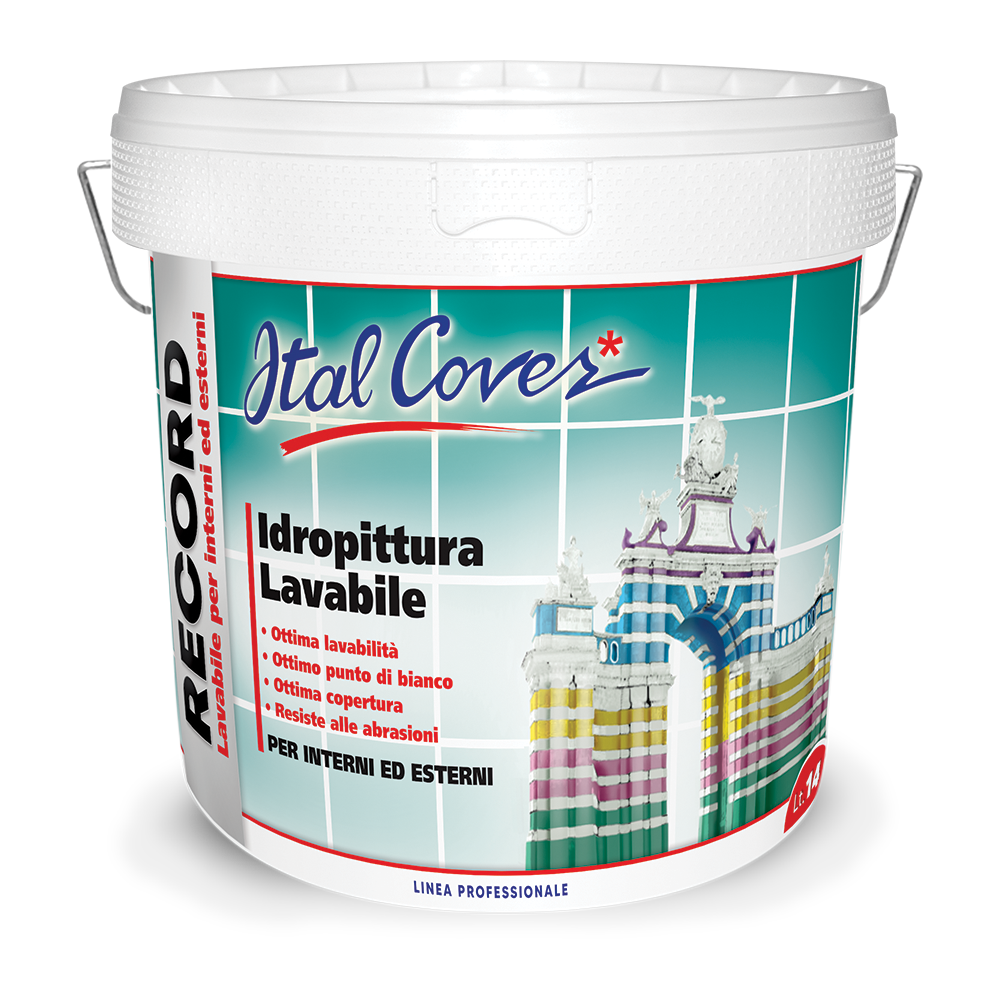 Record è un’idropittura lavabile bianca opaca, per interni ed esterni a base di emulsioni viniliche, dotata di ottima lavabilità, copertura, punto di bianco, resa e scorrevolezza. Indicata per trattamenti a rullo, a pennello e ad airless. Prodotto ideale per hobbisti e professionisti, raccomandata per piccoli lavori e per grandi superfici. Prodotto certificato in classe A+ a basso rilascio nell’ambiente di COV.